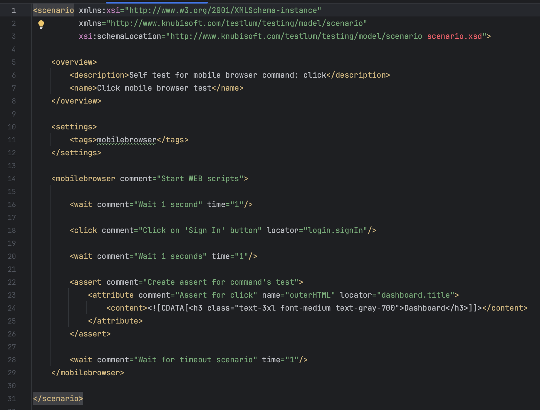 scenario.xmland start writing your tested scenario with the necessary mobile browser command